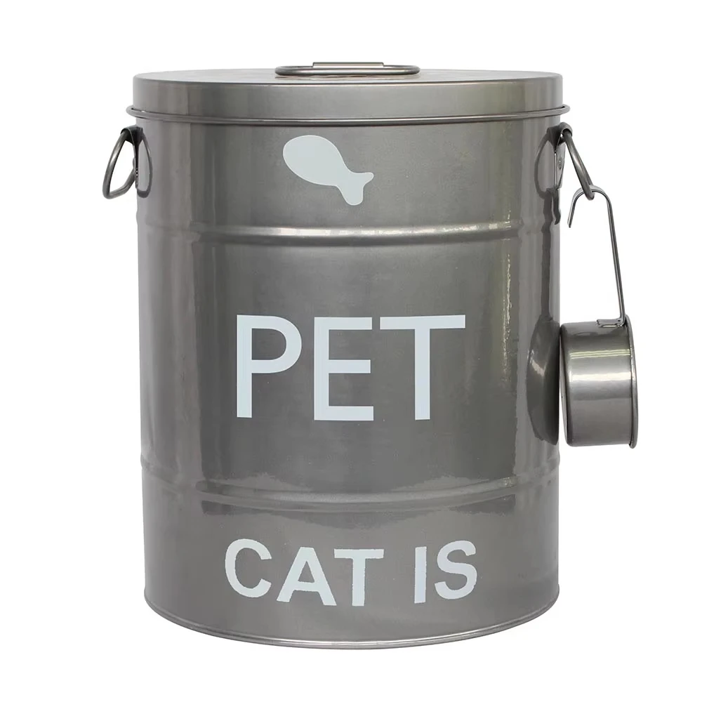 2025 金属宠物食品罐 金属狗粮储存容器 宠物食品容器 狗粮罐 带勺