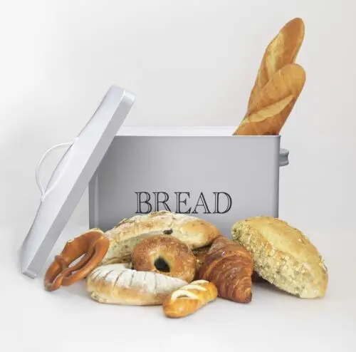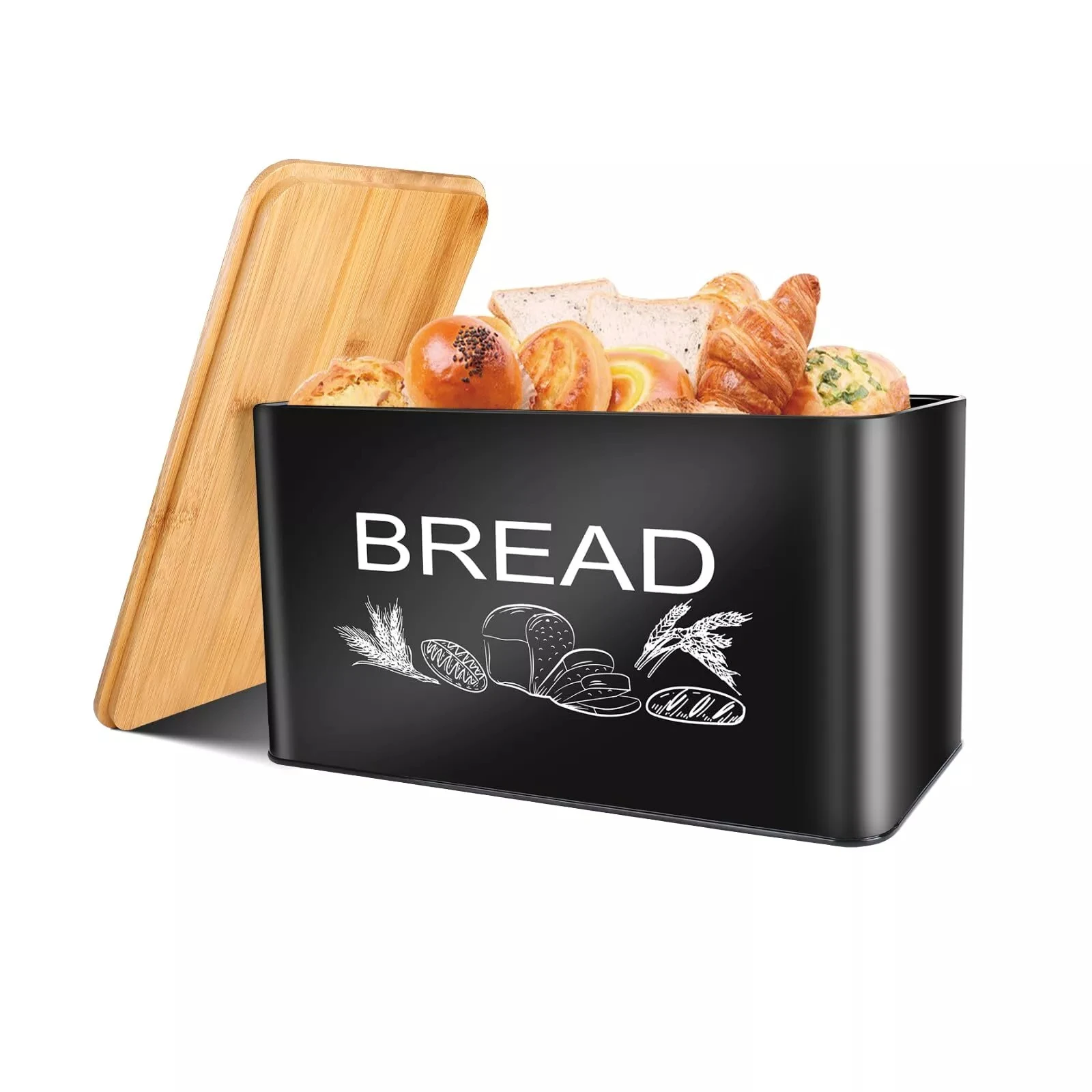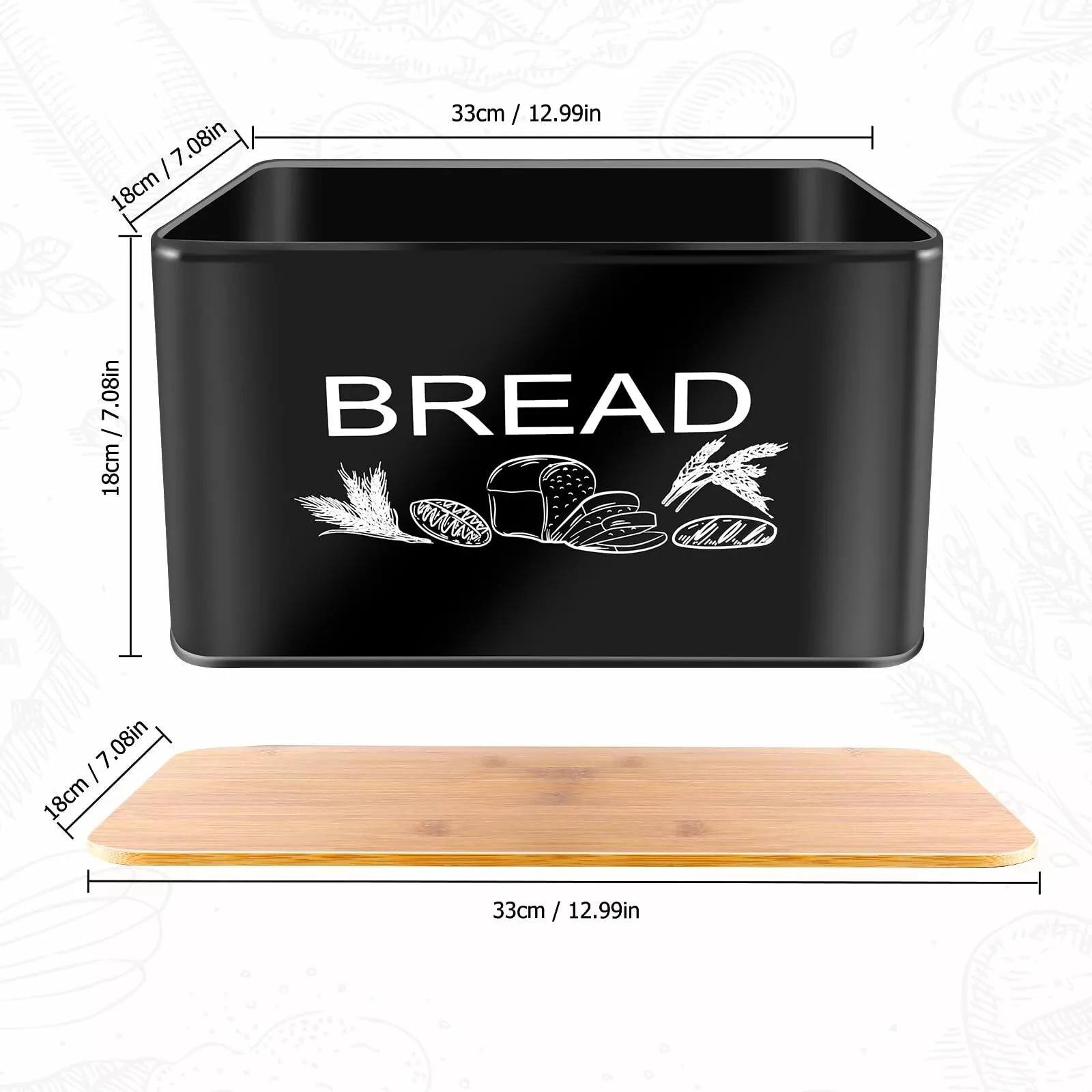 工厂定制面包盒大型厨房储物盒黑色节省空间立式金属面包盒,适用于厨房,带木盖