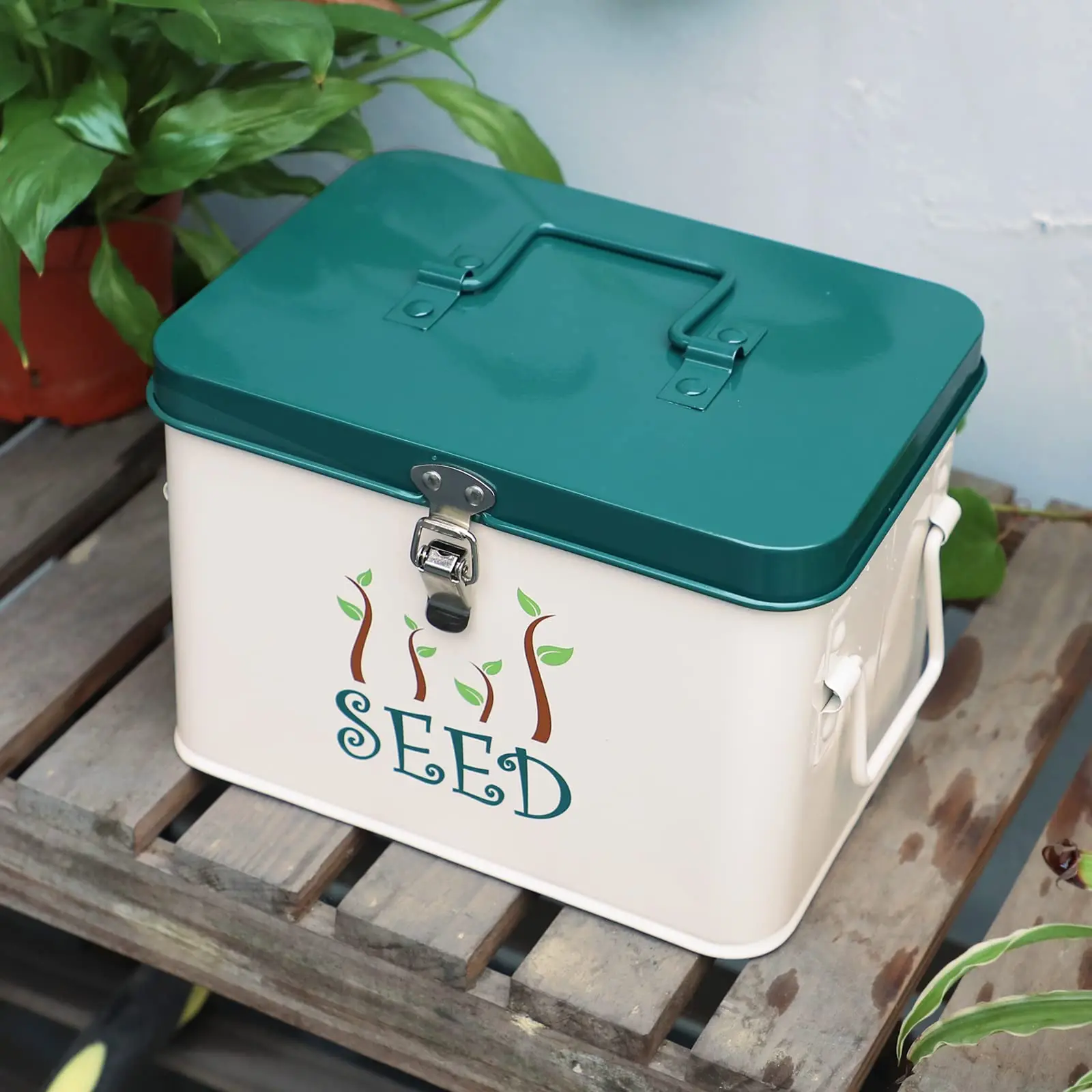 工厂定制镀锌铁金属种子储存箱,带侧把手和闩锁