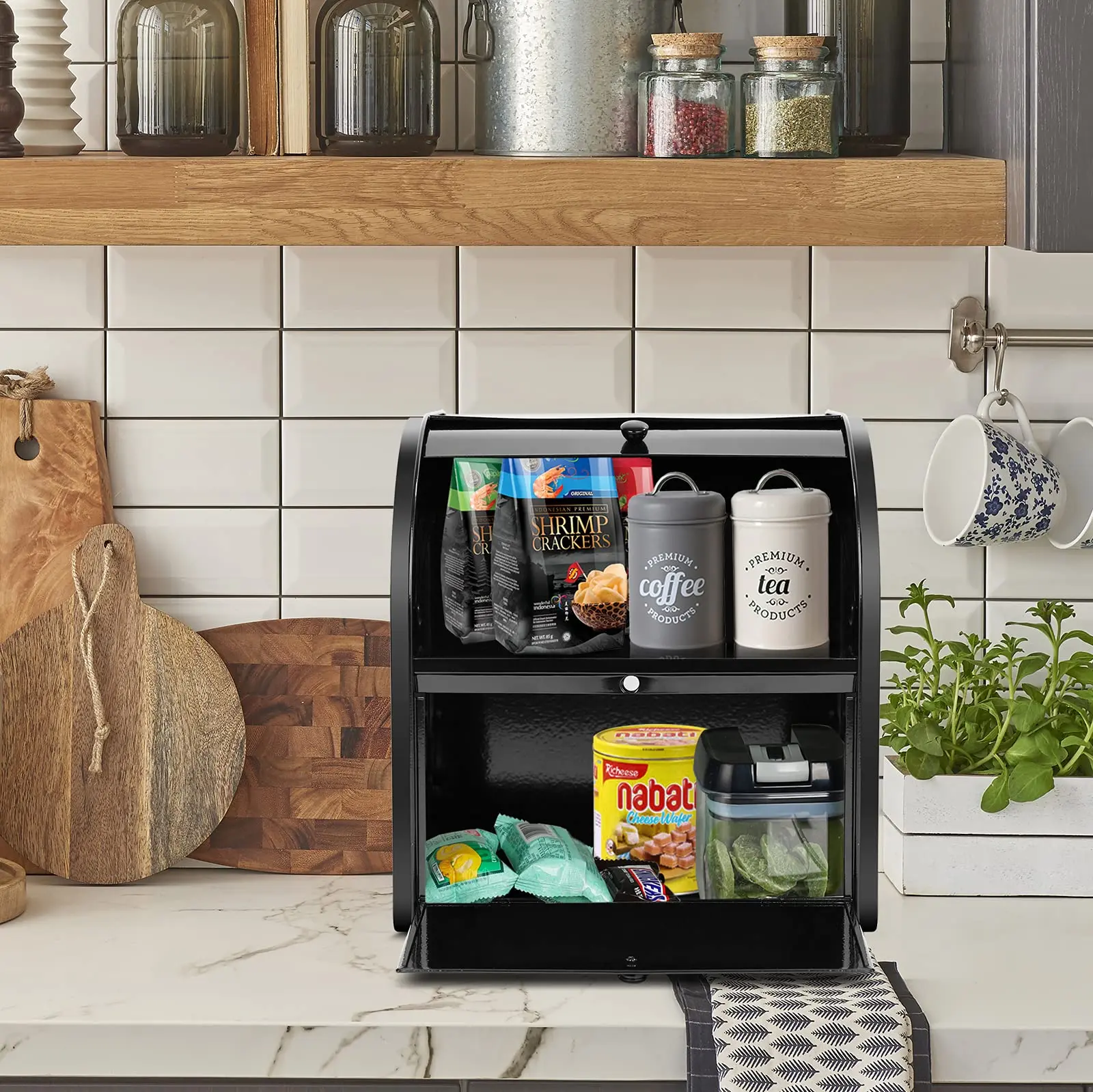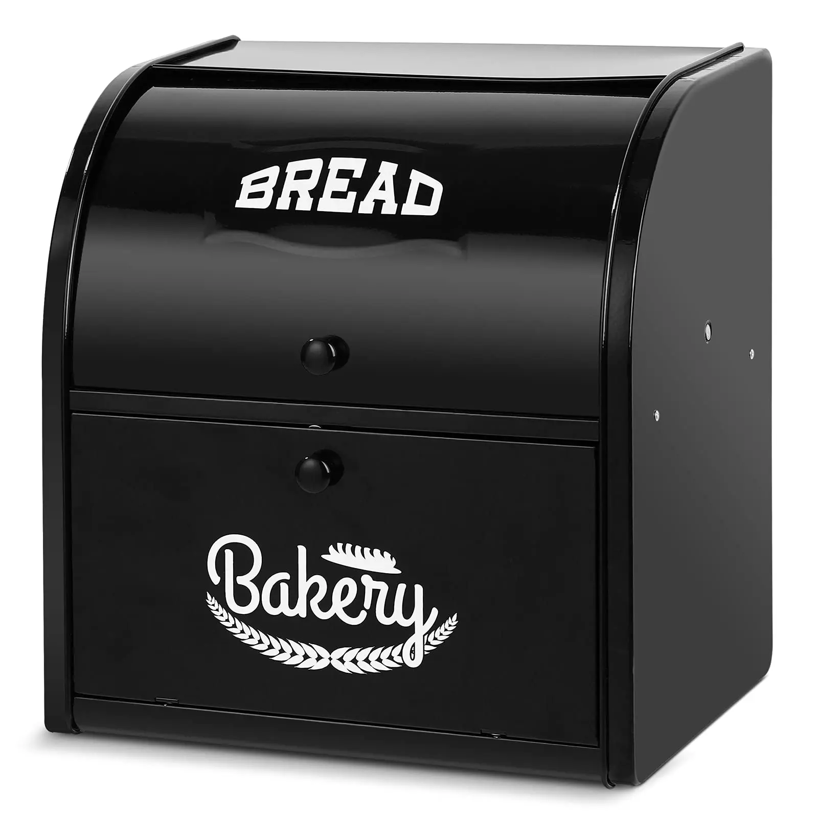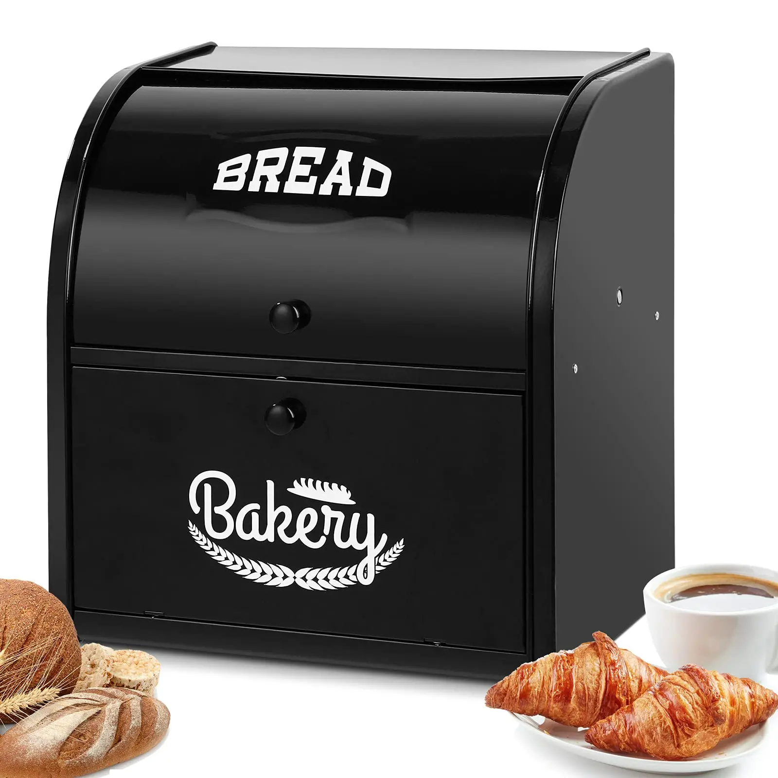 工厂定制金属面包盒双隔间卷顶台面面包储物箱容器支架