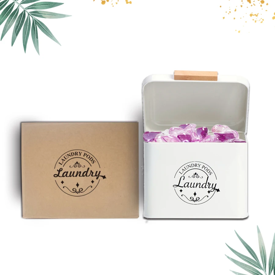 农舍金属洗衣凝珠容器适用于洗衣房装饰洗衣凝珠容器带铰链盖