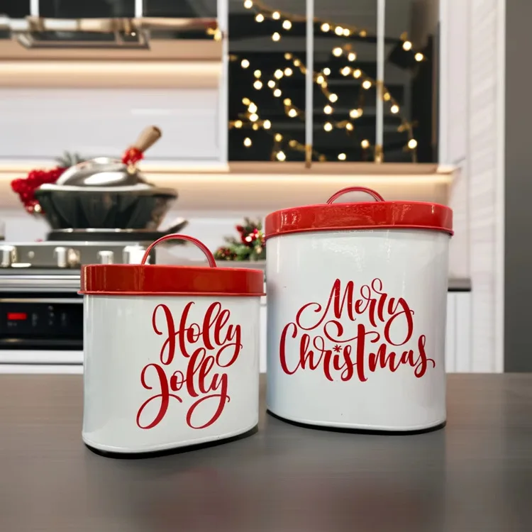 万圣节金属饼干罐圣诞快乐圣诞糖果罐储物罐圣诞派对罐套装节日糖果盒