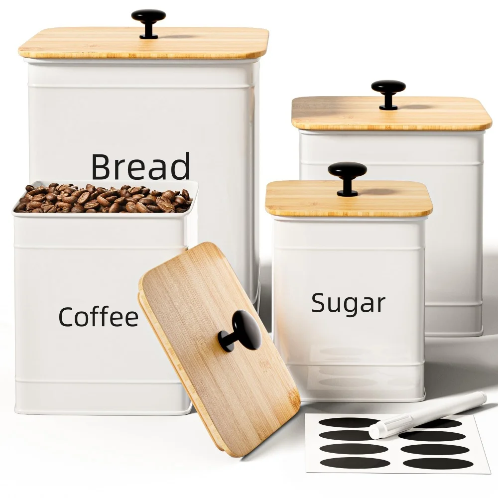 厨房台面用密封罐 4 件套 大铁质厨房密封罐 带密封盖 厨房容器套装