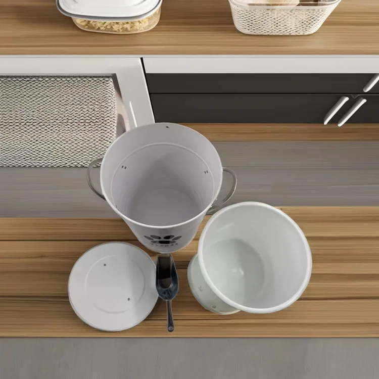 宠物金属食品储存箱猫粮罐狗粮储存容器带勺子