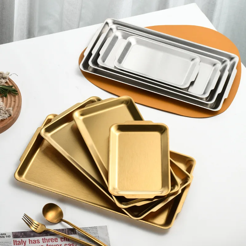餐盘餐具托盘盘子和碗套装银色复古派对圆形鱼盘用于食物不锈钢适用于活动金属