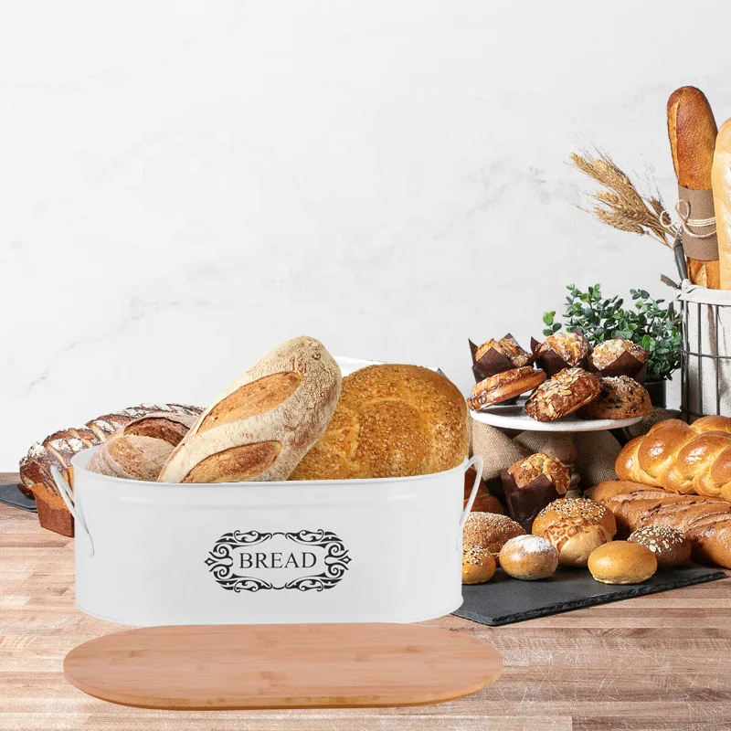 带厚木盖的面包储物盒