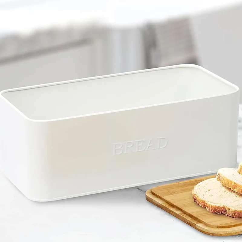 复古面包箱白色面包盒适用于厨房台面面包盒带切菜板盖
