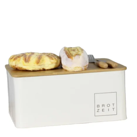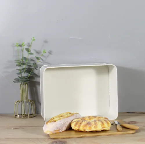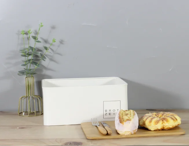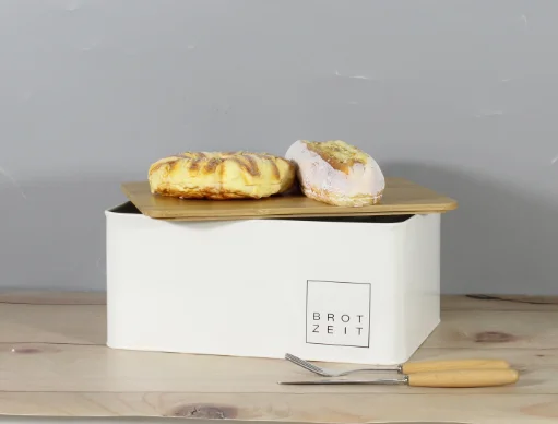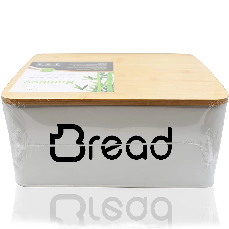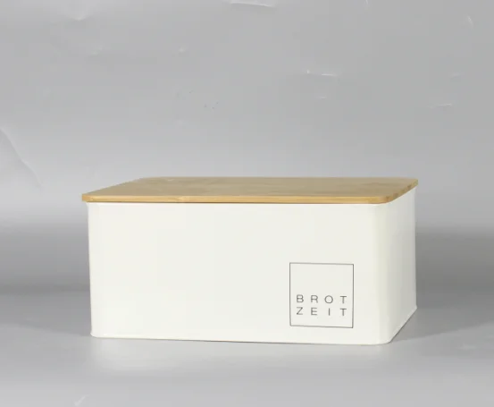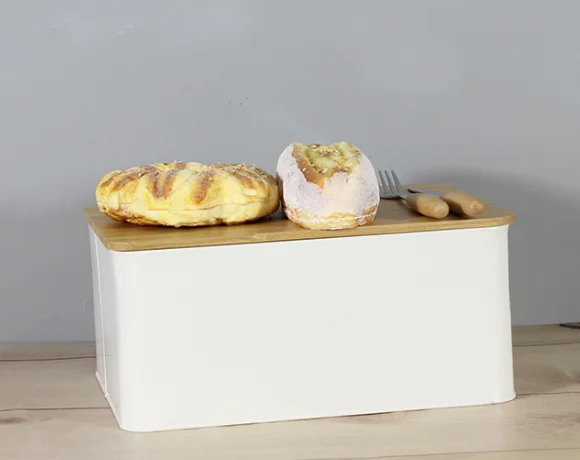 白色粉末涂层面包桶储物盒带竹盖适用于厨房复古设计金属面包盒